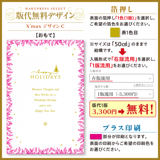 箔押し1版+白インク印刷 | 箔押し1版+印刷両面 | ||