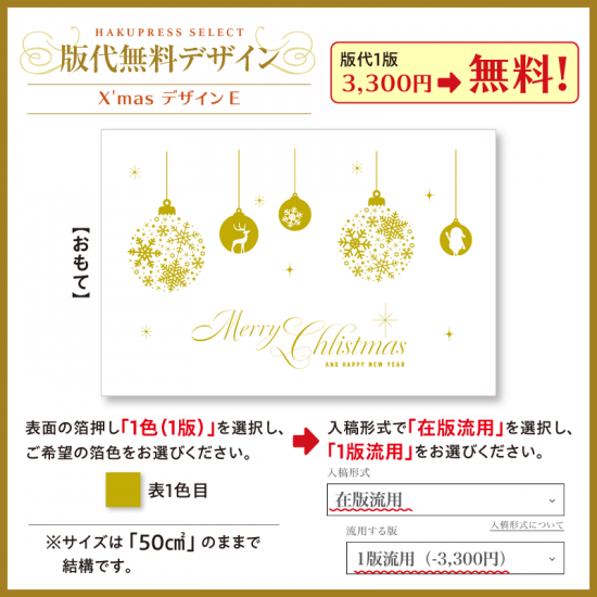 | 箔押し 1版 | 箔押し1版+黒インク印刷 | ||