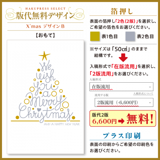 | 箔押し 2版 | 箔押し2版+黒インク印刷 | ||
